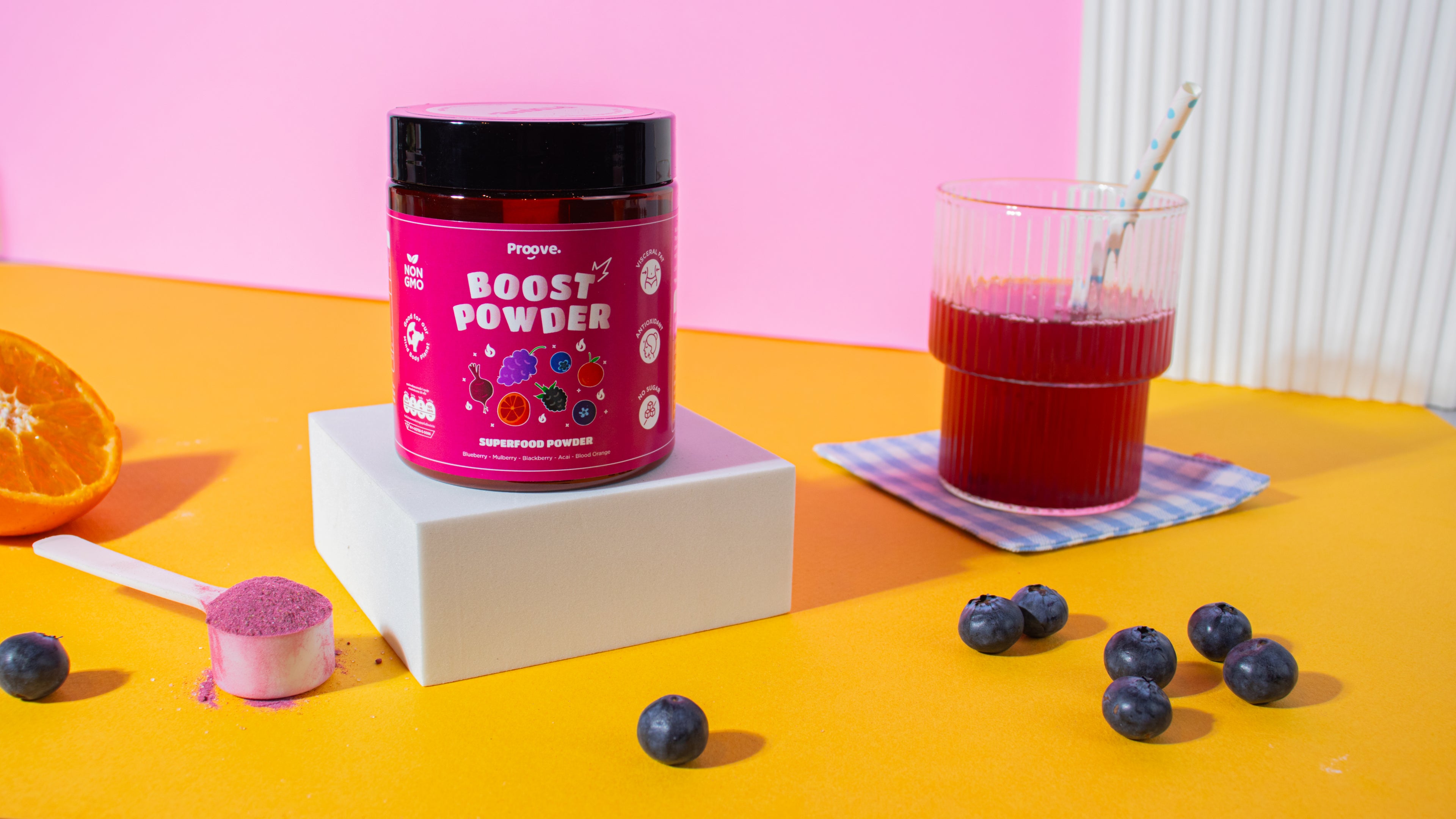 [2แถม1] Proove ผงซุปเปอร์ฟู้ด Boost Powder สารสกัดจากส้มสีเลือด รสอาซาอิมิกซ์เบอร์รี ช่วยลดไขมันหน้าท้อง Free ผงซุปเปอร์ฟู้ด Skin Powder สูตร Astaxanthin สารสกัดจากสาหร่ายสีแดง