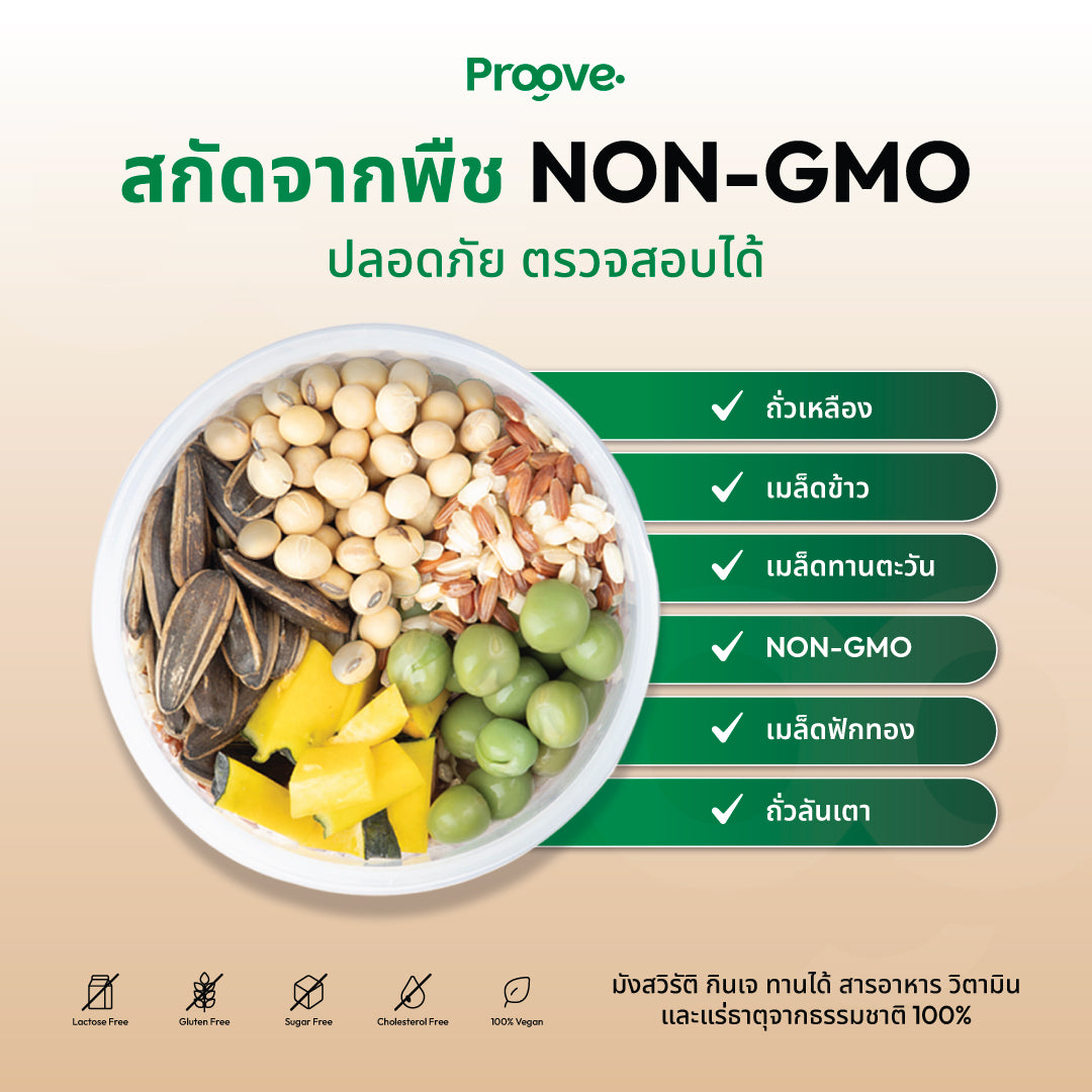 Proove ตั้งใจพัฒนาโปรตีนพืชเพื่อให้การดูแลตัวเองของทุกคนง่ายมากขึ้น ตอบโจทย์ด้านความอร่อย ดื่มง่าย ไม่สากคอ ครบทั้งโปรตีน ใยอาหาร วิตามิน ปลอดภัยจากพืชที่ไม่ผ่านการตัดแต่งพันธุกรรม (Certified Non-GMO)