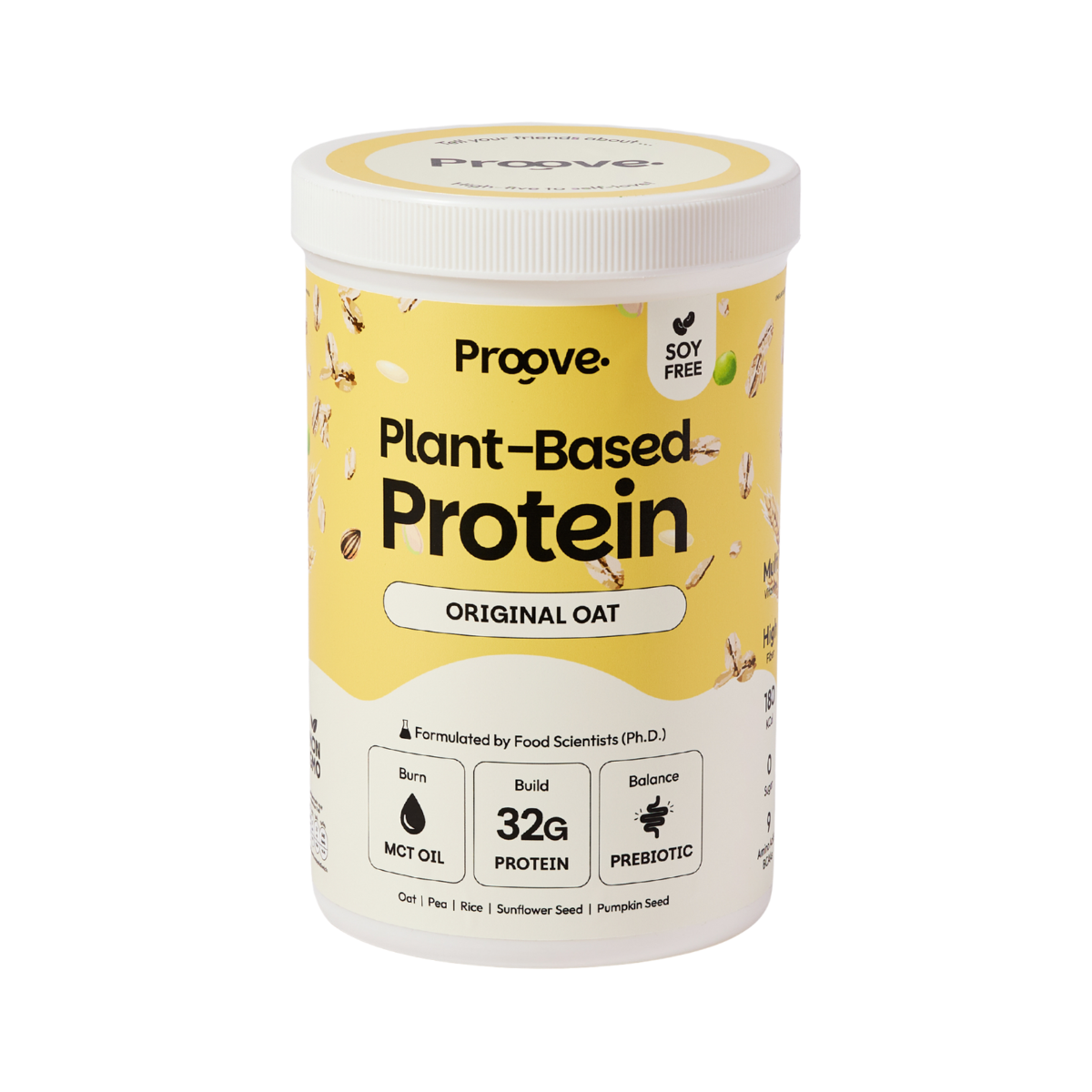 - โปรตีนจากพืชสูง 32 g/scoop จากพืช 5 ชนิด (โอ๊ต, ถั่วลันเตา, เมล็ดทานตะวัน, เมล็ดฟักทอง, ข้าว)
