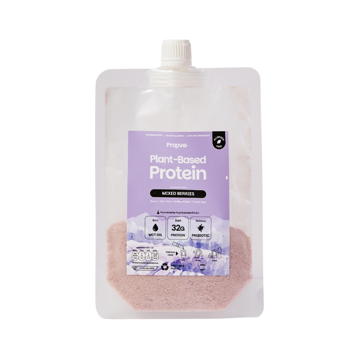 • Proove โปรตีนจากพืชที่อร่อยกลมกล่อม โปรตีนสูงถึง 32 กรัม ปลอดภัยเพราะใช้พืช non-gmo สารอาหารไฟเบอร์และวิตามินครบถ้วน
